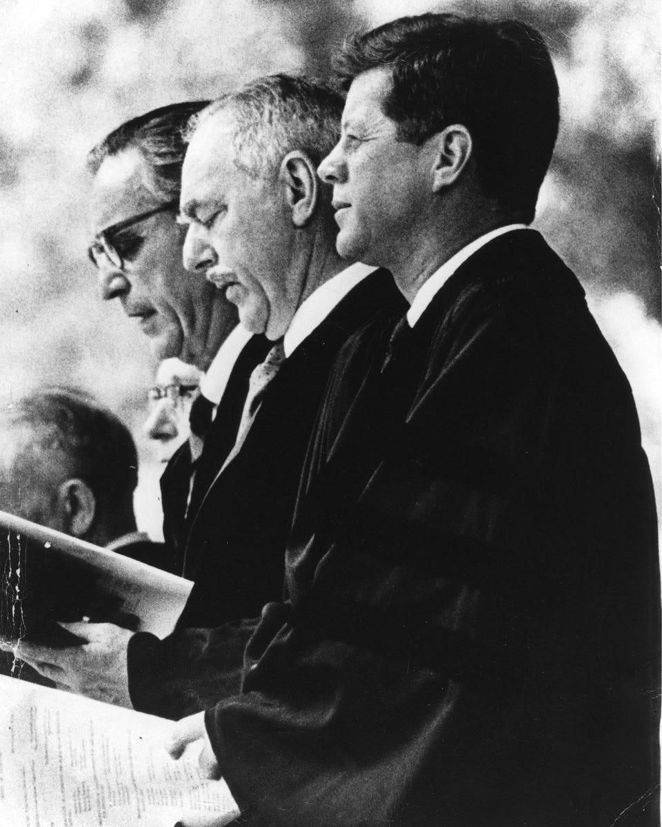 Prescott Bush at the 1962 Yale Graduation with fellow honorees: President John Kennedy and Dean Acheson